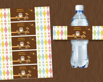 Owl Water Bottle Labels - Digital Printable File - INSTANT DOWNLOAD Baby Shower | Water bottle ...